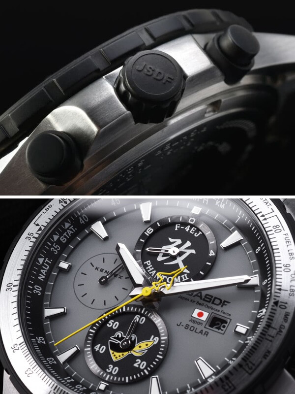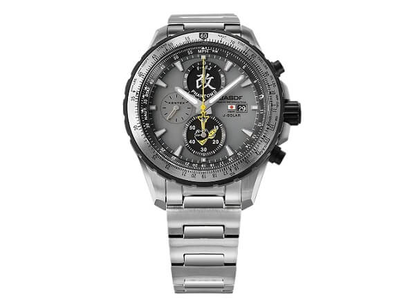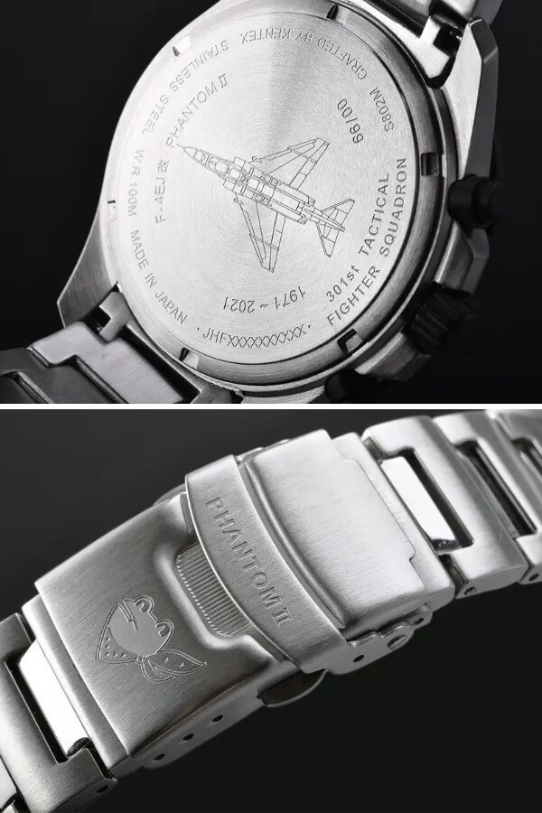 Модель S802M-04 — это технологичный, высокоточный кварцевый хронограф на солнечной батарее, ориентированный на историю 301-ой тактической эскадрильи Воздушных сил самообороны Японии, последнему авиационному подразделению эксплуатировавшему истребитель Phantom F-4EJ Kai.