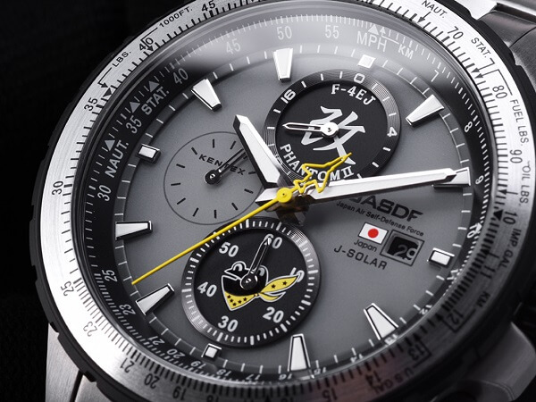Секундная стрелка имеет противовес в виде контура самолета Фантом II. Парящие конические индексы белого цвета имеют покрытие светонакопителем высокой видимости в вечернее и ночное время. Используется технология компании Nemoto & Co., Ltd.