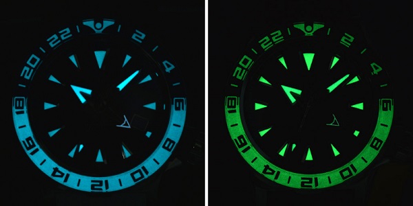 Ярким элементом дизайна является плоский сапфировый безель, вращающийся в двух направлениях. Двухцветная 24-часовая разметка характерна для часов с усложнением ГМТ, служит для установки часовых поясов, определяет день-ночь в заданных регионах. Благодаря яркому люминесцентному составу, позволяет легко ориентироваться по Гринвичу даже в темноте.