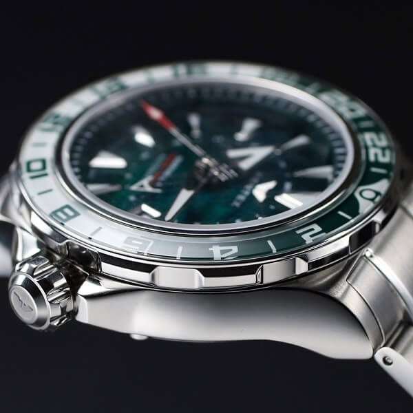 Концепция – мощные и практичные механические часы GMT для морских миссий. Водонепроницаемость спроектирована на 150 метров (15 атм). Подходят для яхтинга, водных видов спорта, допустимо плавание и небольшие погружения с аквалангом. Яркий выразительный дизайн подчеркнёт вашу индивидуальность, добавит самовыражения. Сделано в Японии, сделано с душой, надёжно и качественно.