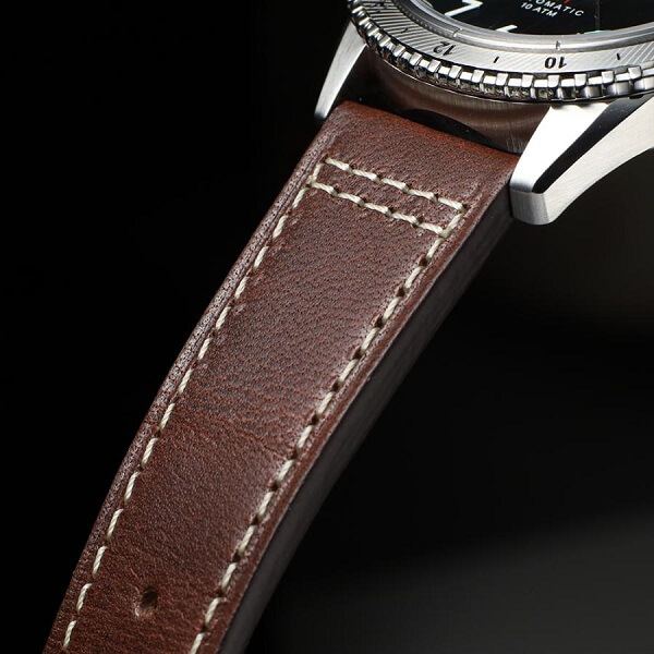 Комбинированные кожаные ремешки, 22 мм по дужкам и 18 мм у застежки, выполнены из высококачественной промасленной кожи. Структура ремешка тщательно продумана. Нижняя часть имеет каучуковый слой, предотвращающий преждевременный износ, обеспечивает долговечность и комфортную посадку.