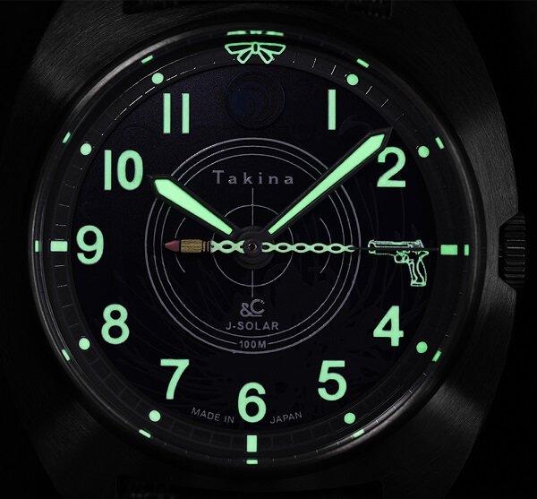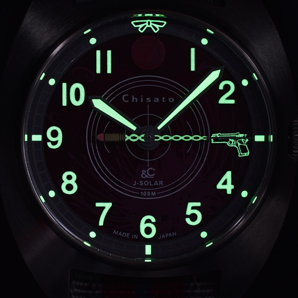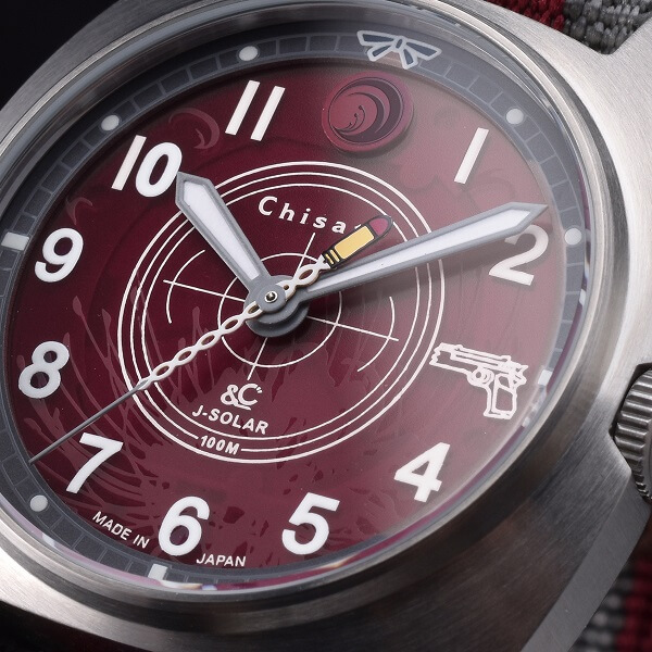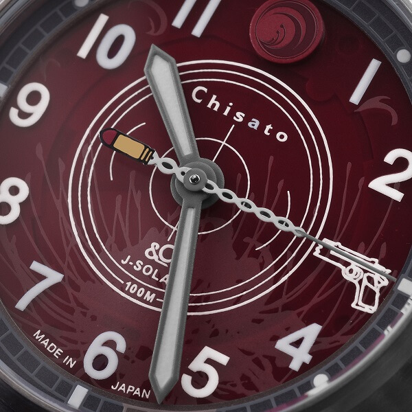 Секундная стрелка выполнена в мотивах нелетальной пули Чисато и точного выстрела Такины, целостно сочетается с силуэтом пистолета, расположенным у отметки «3 часа». Один раз в минуту, в момент, когда секундная стрелка отсчитает 15 секунд, появляется изображение выстрела и траектория летящей пули.