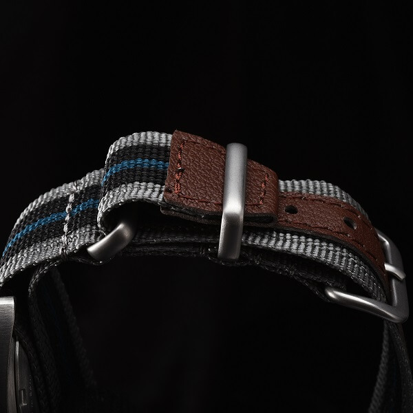 Женские часы с циферблатом глубокого тёмно-синего цвета, отражающего спокойный и уравновешенный характер. Нейлоновый спортивный ремешок с кожаными вставками.